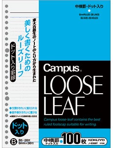 東大合格生のノートのとり方を研究して生まれたキャンパスノートコクヨS&T キャンパス ルーズリーフ B罫 ドット入り B5 100枚 ノ-836BT 5冊セット 価格: 1,092円 レビュー評価:0.0 レビュー数:0 ●サイズ:B5●穴数:26穴●罫内容:中横罫(ドット入り)●行・枚数:36行・30枚●紙質/上質紙 ●紙厚/75g/平米●寸法/タテ257mm×ヨコ182mm ●罫幅/中横罫(B罫):6mm試験勉強の整理用に便利なルーズリーフです。普通横罫(A罫)と中横罫(B罫)の2種類があります。パッケージの裏にドット入り罫線の活用方法が記載されています。東大合格生の ノートのとり方を研究して生まれたキャンパスノート 「美しく書く」をサポートするドット入り罫線 「ドット入り罫線」の特長 等間隔に並んだドットが「美しく書く」をサポートするので 文頭をそろえやすい、図形や表が書きやすい、資料を真っ直ぐに貼ること Supported by 楽天ウェブサービス |